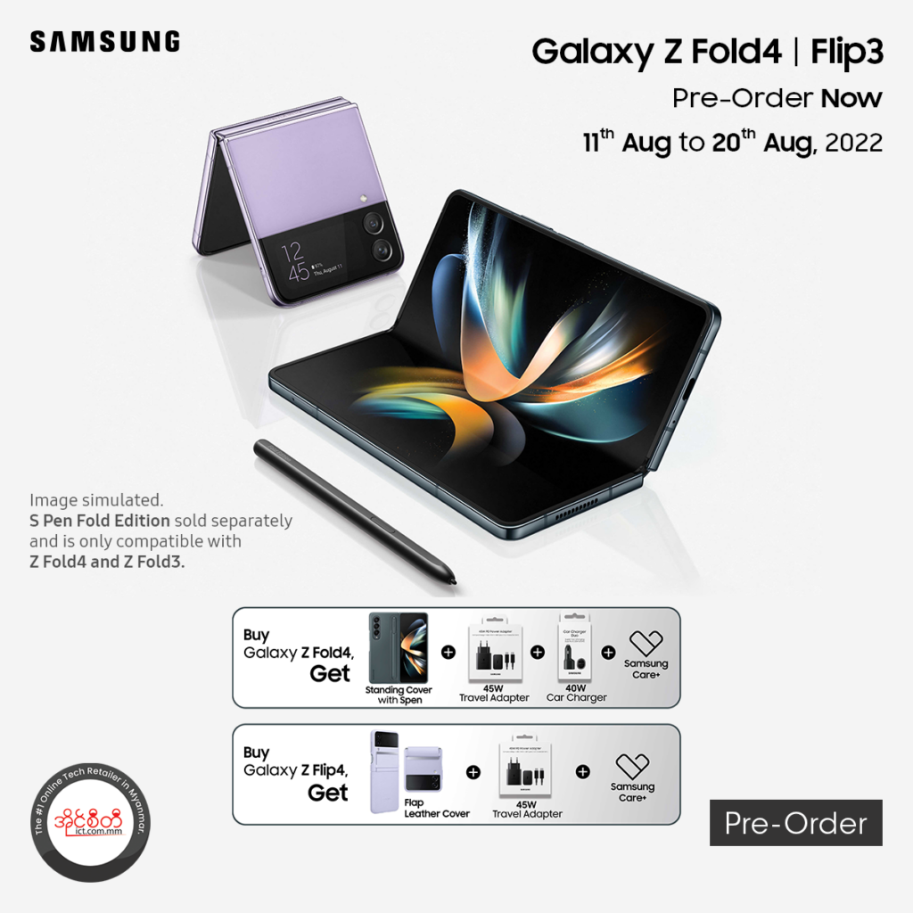12 Aug News, Review ပိုမိုသာလွန်တဲ့ စွမ်းဆောင်ရည်နဲ့ Galaxy Z Flip4, Galaxy Z Fold4 August 12, 2022 By ICT.com.mm 0 comments အတန်ဆုံးစျေးနဲ့အဦးဆုံး 𝐏𝐫𝐞-𝐨𝐫𝐝𝐞𝐫 မှာယူနိုင်ပါပြီ တန်ဆို 𝐏𝐫𝐞-𝐨𝐫𝐝𝐞𝐫 မှာယူသူတိုင်းကို (၅)သိန်း ဝန်းကျင်တန်ဖိုးရှိတဲ့ လက်ဆောင်တွေ...Continue reading