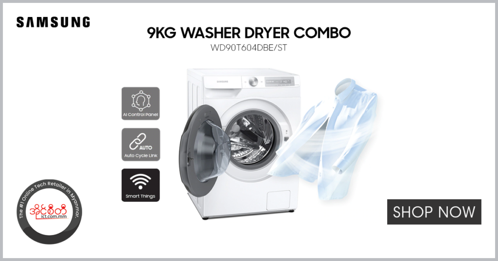 20 May News, Review Samsung 9kg Washer Dryer Combo WD90T604DBE/ST May 20, 2022 By ICT.com.mm 0 comments မိုးတွေကလဲရွာ လျှော်ပြီးထားတာလေးတွေ မခြောက်ရင် စိုထိုင်းထိုင်းနဲ့ မှိုစော် နံတော့မှာပဲ...ဒီလို မဖြစ်စေဖို့ လျှော်ပြီးသားတွေကို တခါတည်...Continue reading