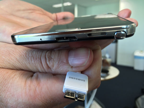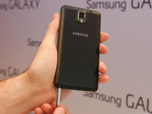 8.3mm အထူရှိပြီး 168g အလေးချိန် ရှိပါတယ်။ Note 3 ဟာ လက်တစ်ဖက်ထဲ နဲ့ကိုင်တွယ်အသုံးပြုလို့ အဆင်ပြေတာကိုလည်း တွေ့ရပါတယ်။ အနောက်ဖက်မှာ 13 Megapixel Camera တပ်ဆင်ထားပြီး LED Flash ပါရှိပါတယ်။ အနောက်ဖက်မျက်နှာပြင်ကို သားရေနဲ့ ဖုံးအုပ်ထားပါတယ်။ S Pen ကို ဖုန်းရဲ့ အောက်ခြေမှာ ထည့်သွင်းထားပါတယ်။