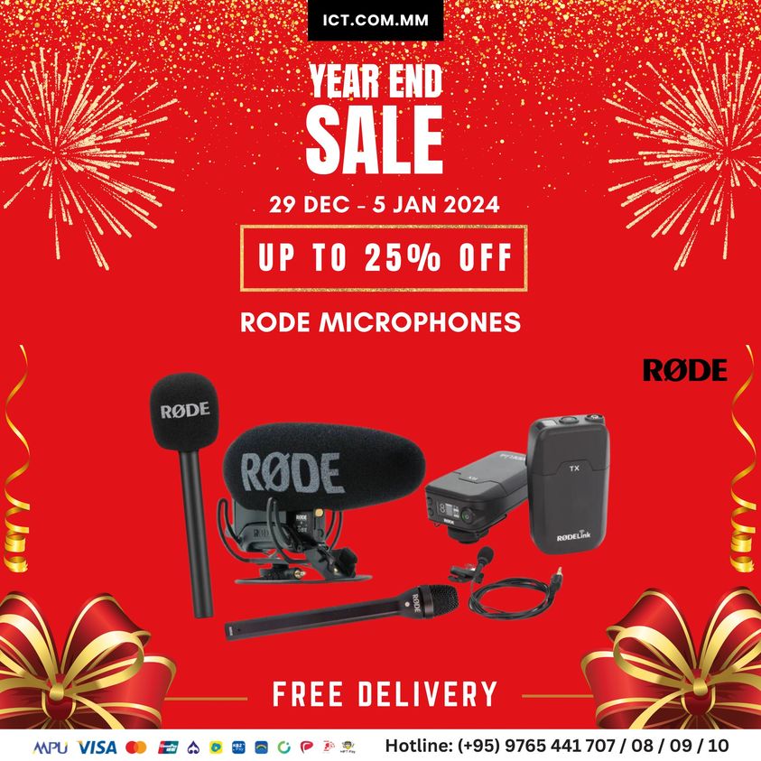 Camera အတွက်တင်မကသေးပါဘူး။ iOS နဲ့ Android Device တွေအတွက် သီးသန့် အသုံးပြုနိုင်မယ့် Mic တွေလည်းရှိသေးတဲ့အပြင် သတင်းတင်ဆက်သူများ Interview လုပ်နိုင်ဖို့အတွက် Mic တွေပါရှိနေတာကြောင့် အခု Year End Sale မှာ Promotion ချထားသော RODE Microphones များကို Content Creator များ၊ Vlogger လုပ်ချင်သူများနဲ့ သတင်းထောက်များ စိတ်ဝင်စားရင် ဝင်ရောက်ကြည့်ရှုပေးကြပါဦးနော်။